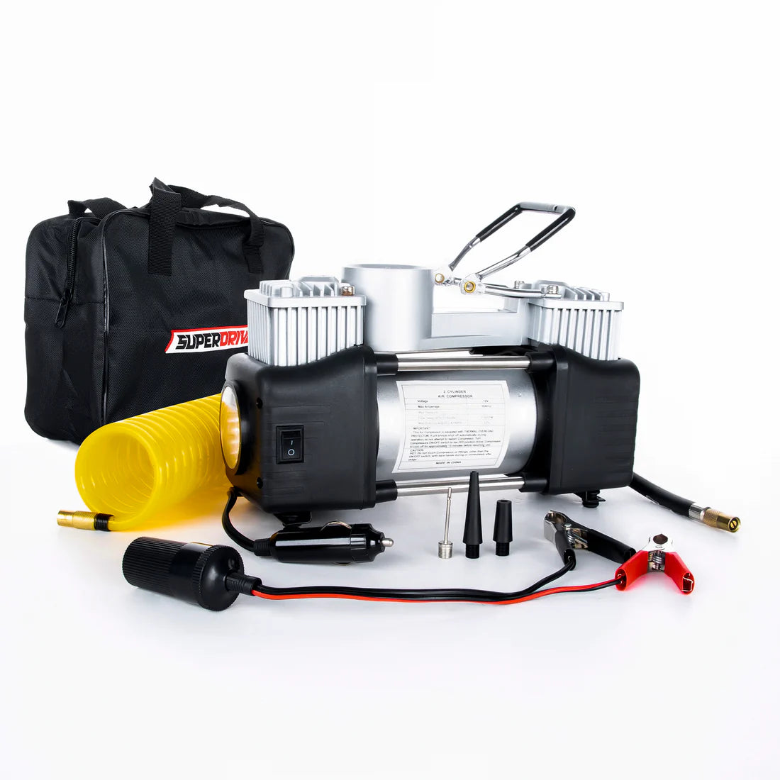 كومبريسور سوبردرايف ينفذ استخدامات متعددة ، مثل نفخ السيارات والدراجات النارية وإطارات الدراجات والكرات والمراتب الهوائية والقوارب القابلة للنفخ وما إلى ذلك. قم بتوصيله ببطارية سيارة 12 فولت لاستخدام هذا الجهاز أو استخدم الضاغط كمصدر للضوء أثناء الظلام.